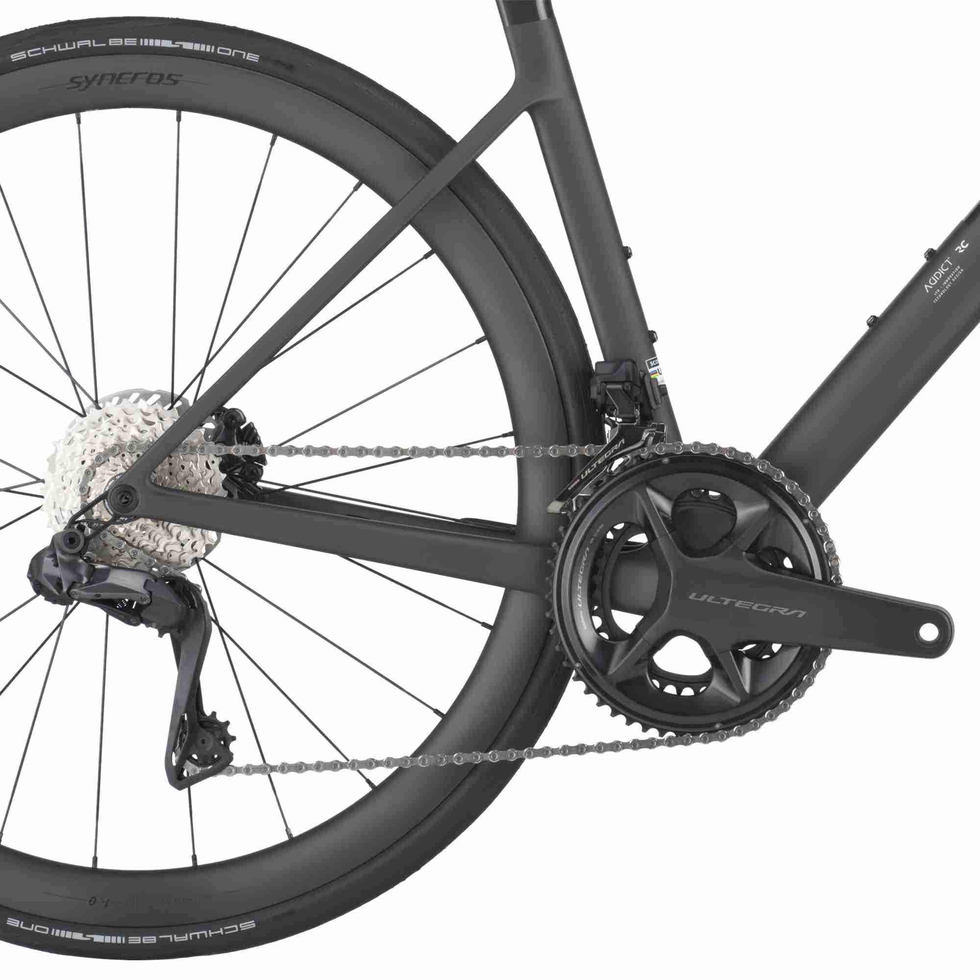 RAHMEN: Addict RC HMX Road Race geometry / Replaceable Derailleur Hanger Internal cable routing GABEL: Addict RC HMX Flatmount Disc 27.2mm Eccentric Carbon steerer SCHALTWERK: Shimano Ultegra Di2 RD-R8150 24 Speed Electronic Shift System UMWERFER: Shimano Ultegra Di2 FD-R8150 Electronic Shift System SCHALTHEBEL: Shimano Ultegra Di2 ST-R8170 Electronic Shift System KURBELSATZ: Shimano Ultegra FC-R8100 Hollowtech II 52x36 INNENLAGER: Shimano SM-BB71-41B KETTE: Shimano CN-M8100-12 KASSETTE: Shimano Ultegra CS-R8101-12 12724 BREMSEN: Shimano BR-R8170 Hyd.Disc BREMSSCHEIBE: Shimano RT-CL800 rotor 160/F and 140/R LENKER: Syncros HB-R100-CF VORBAU: Syncros ST-R100-AL SATTELSTÜTZE: Syncros SP-R101-CF SATTEL: Syncros Belcarra Regular 2.0 STEUERSATZ: Acros AIF-1317 LAUFRADSATZ: Syncros Capital 1.0 40mm 24 Front / 24 Rear Syncros SL Axle VORDERREIFEN: Schwalbe ONE TLE Race-Guard Fold 700x30C HINTERREIFEN: Schwalbe ONE TLE Race-Guard Fold 700x30C ZUBEHÖR: Syncros iS Drop Bar Tool 2 GEWICHT IN KG (CA.): 7.3MAX. SYSTEMGEWICHT: 120kg Das Gesamtgewicht umfasst das Bike, den Fahrer, die Ausrüstung und eventuelles weiteres Gepäck