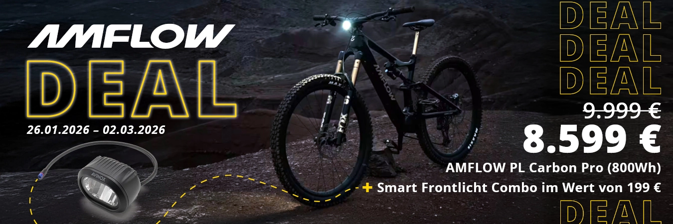 - Perfekt integriertes Design: Das aufgeräumte Cockpit und der fast unsichtbare 800-Wh-Akku machen das AMFLOW nicht nur leistungsfähig, sondern auch optisch zu einem echten Highlight.