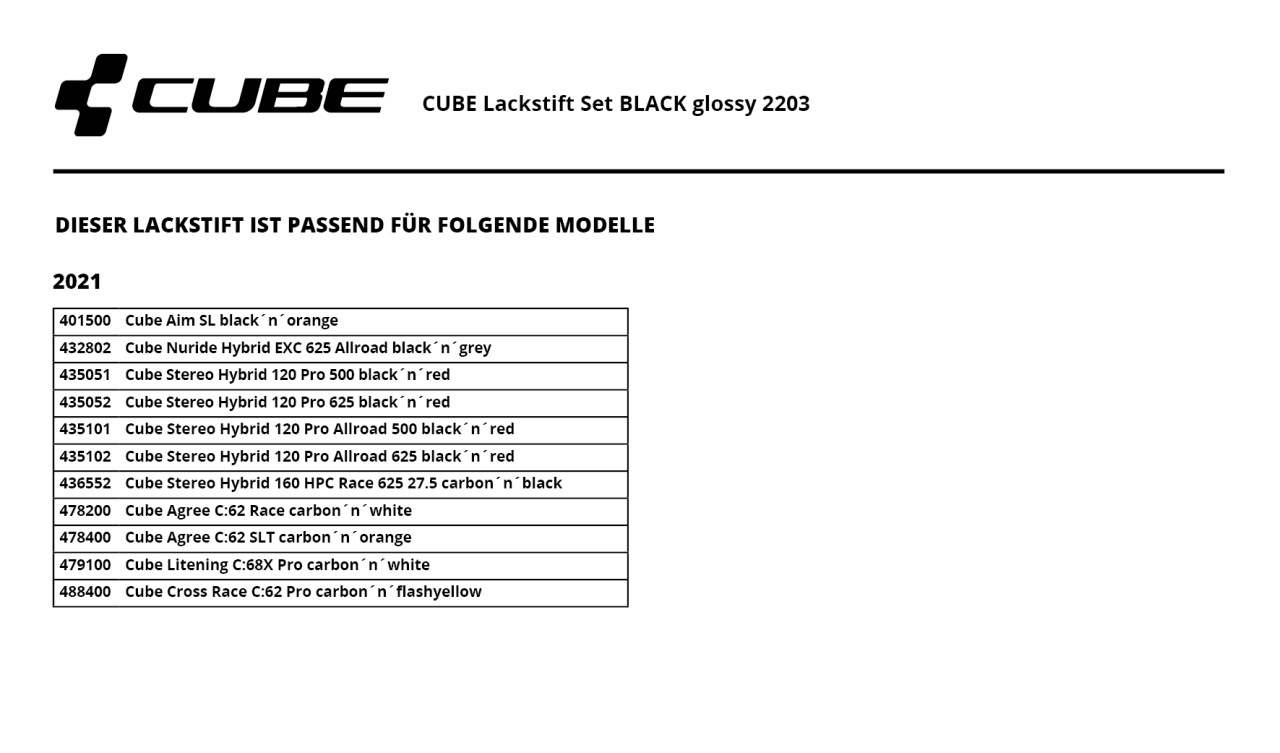 Cube Touch-Up Pen Lackreparaturstift Set black